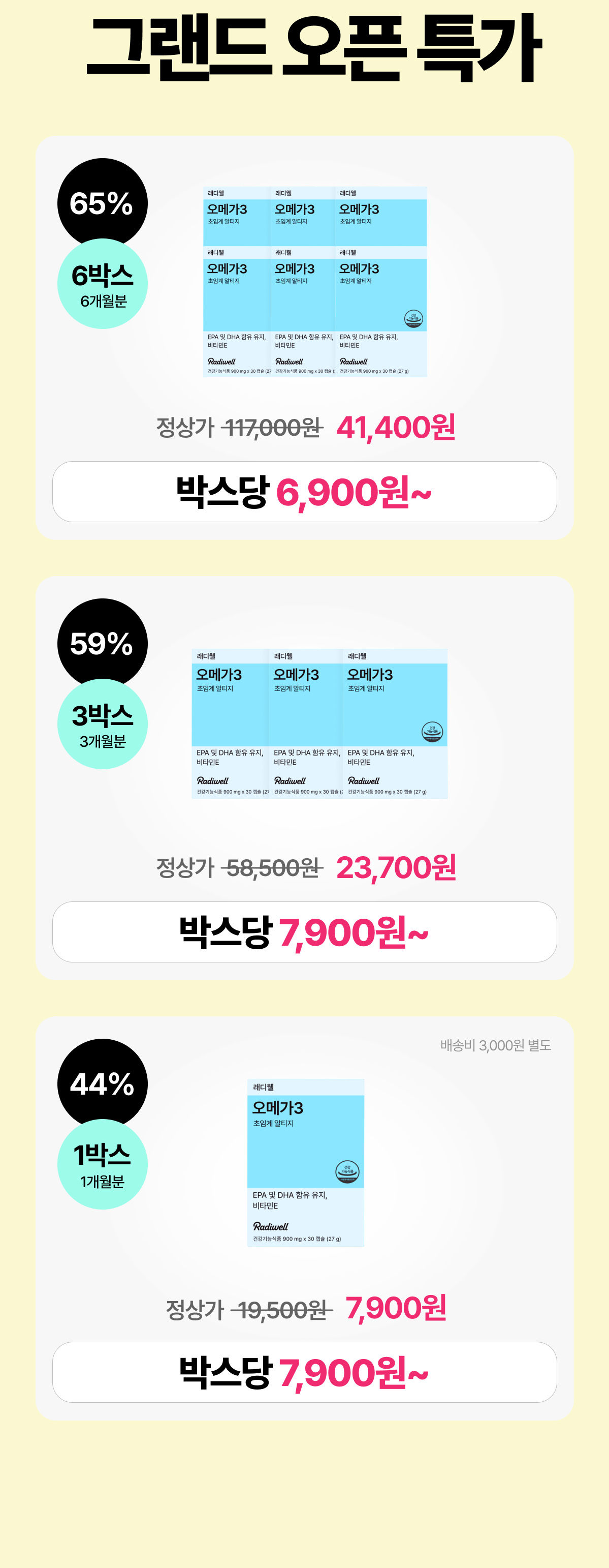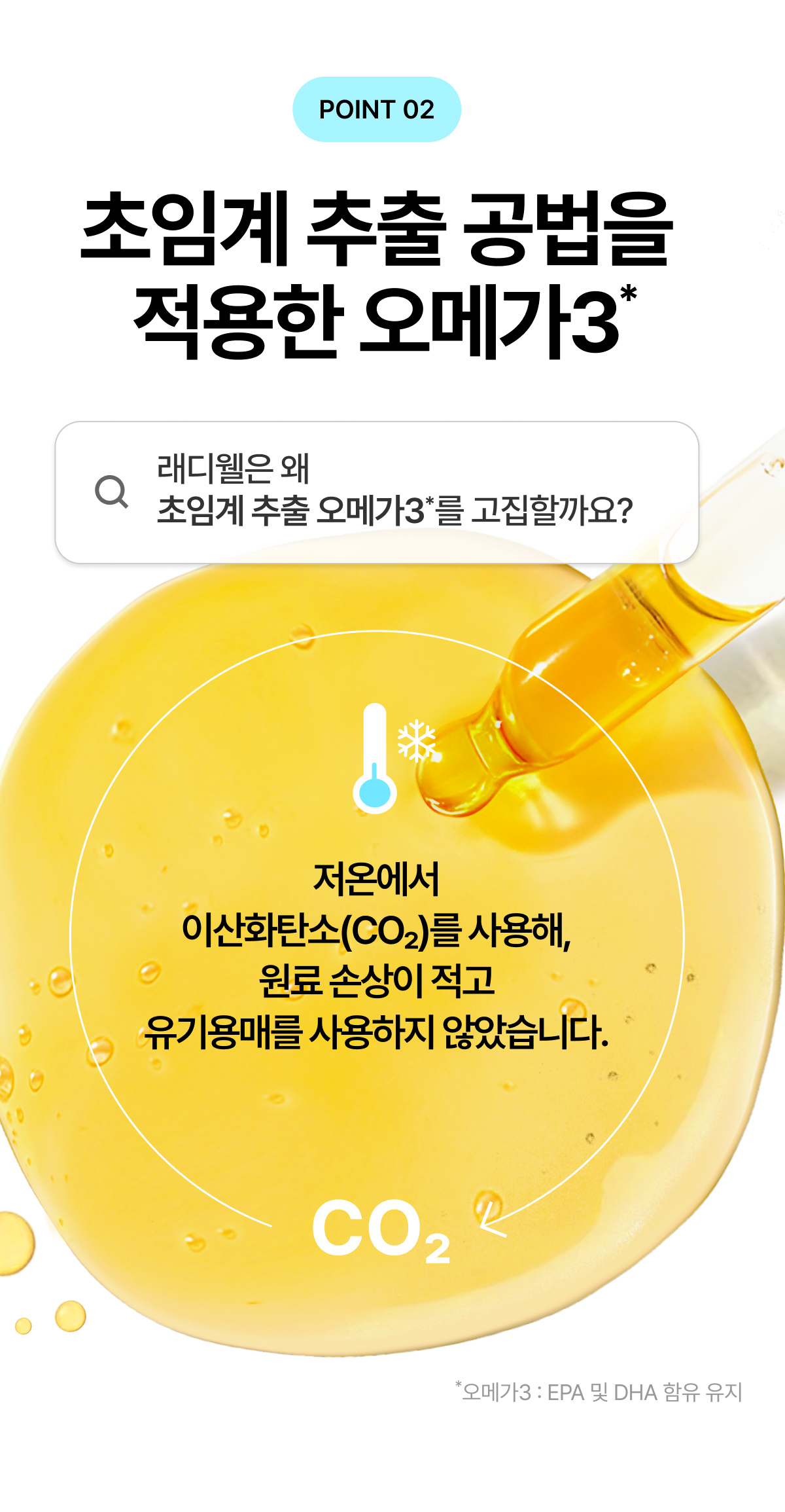 오메가3 유목민이었는데 드디어 래디웰로 정착했습니다. 일단 가격이 너무 착해서 놀랐는데, 스펙은 초임계 추출에 알티지 구조까지 갖춘 프리미엄급이라 안 살 이유가 없더라고요.