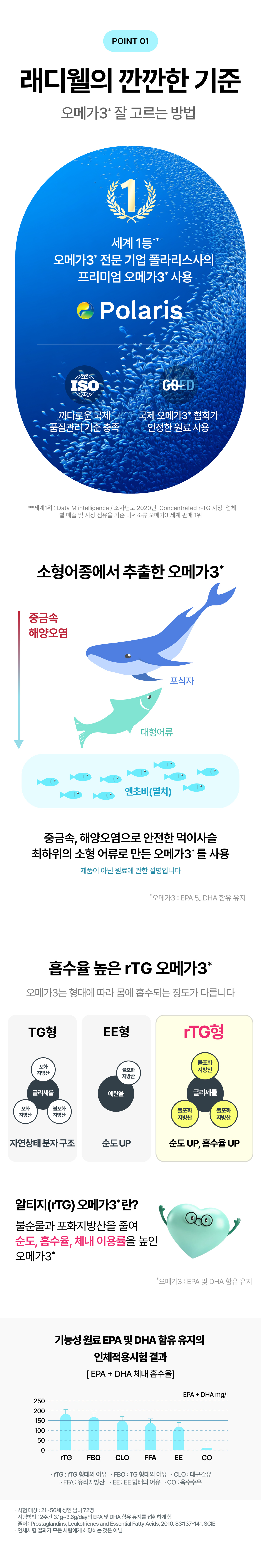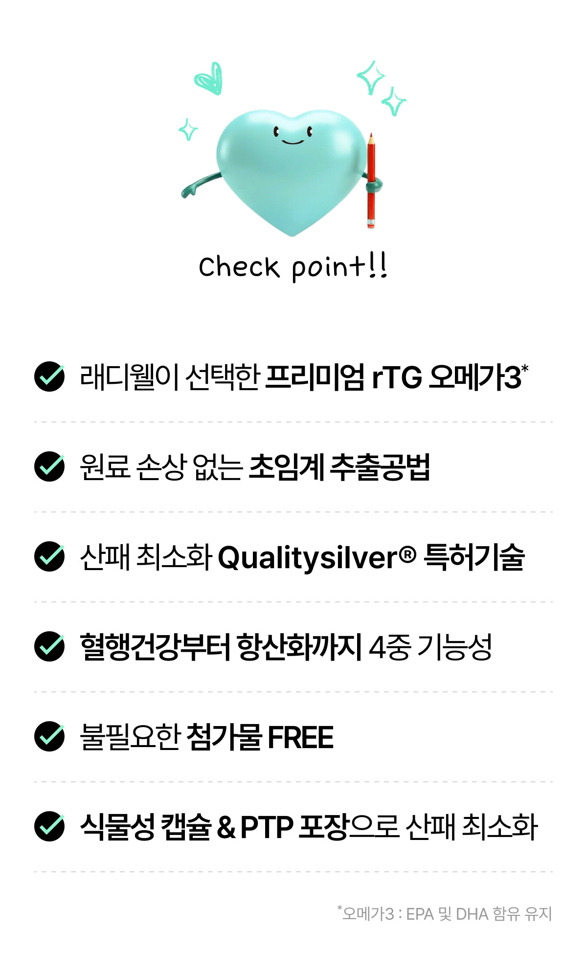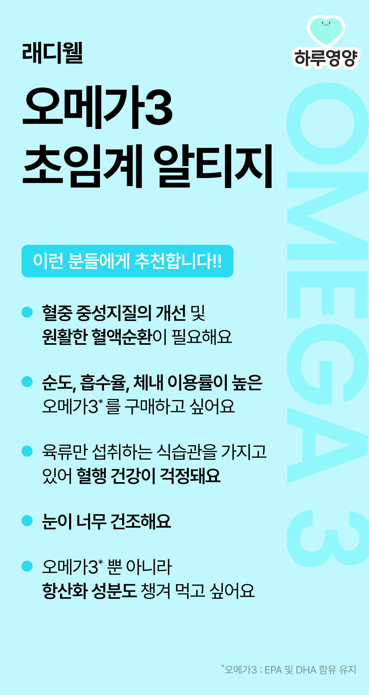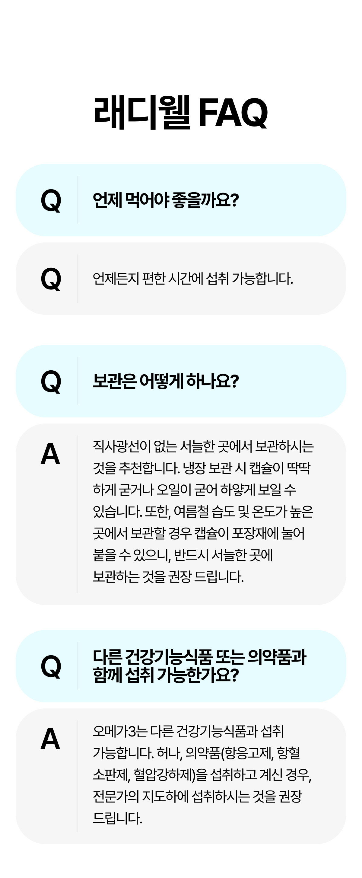 오메가3는 꾸준하게 먹어야 하다 보니 잘 골라야하는데 프로바이오틱스 전문 브랜드인 래디웰에서 나온 제품으로 골라봤어요. 믿을수 있는 브랜드였거든요.