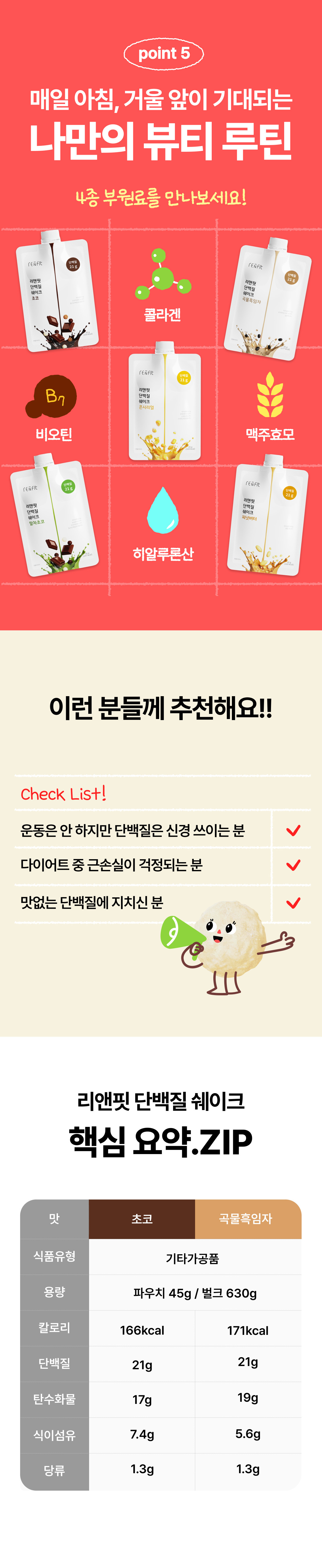 운동 끝나고 무조건 단백질 챙기는 편인데 홍진경 모델이라 눈길이 가서 구매했어요. 보통 단백질 쉐이크는 너무 텁텁하거나 달아서 싫었는데 리앤핏은 깔끔하고 단백질 함량도 높은데 콜라겐이랑 비오틴까지 있어서 더 좋아요. 운동하는 사람들 진짜 만족할 듯